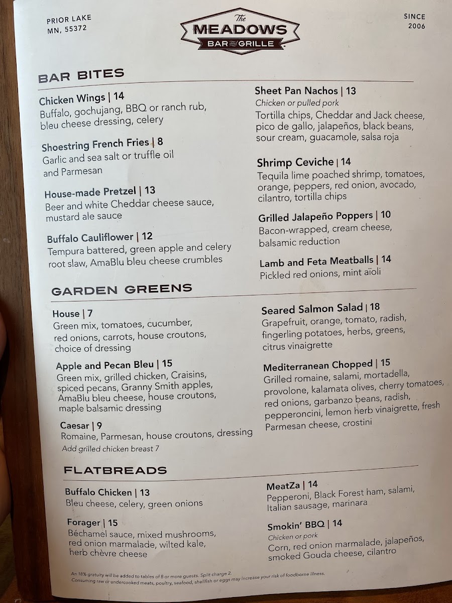 Welcome to The Meadows Bar and Grille, a delightful culinary haven located at 2400 Mystic Lake Blvd NW, Prior Lake, MN. This inviting eatery offers a diverse menu that caters to both casual diners and those looking to elevate their dining experience.